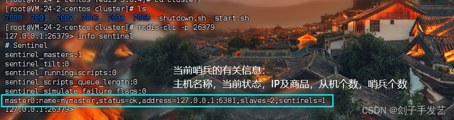 然后进入哨兵机制的客户端,并查看哨兵信息: