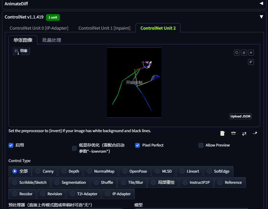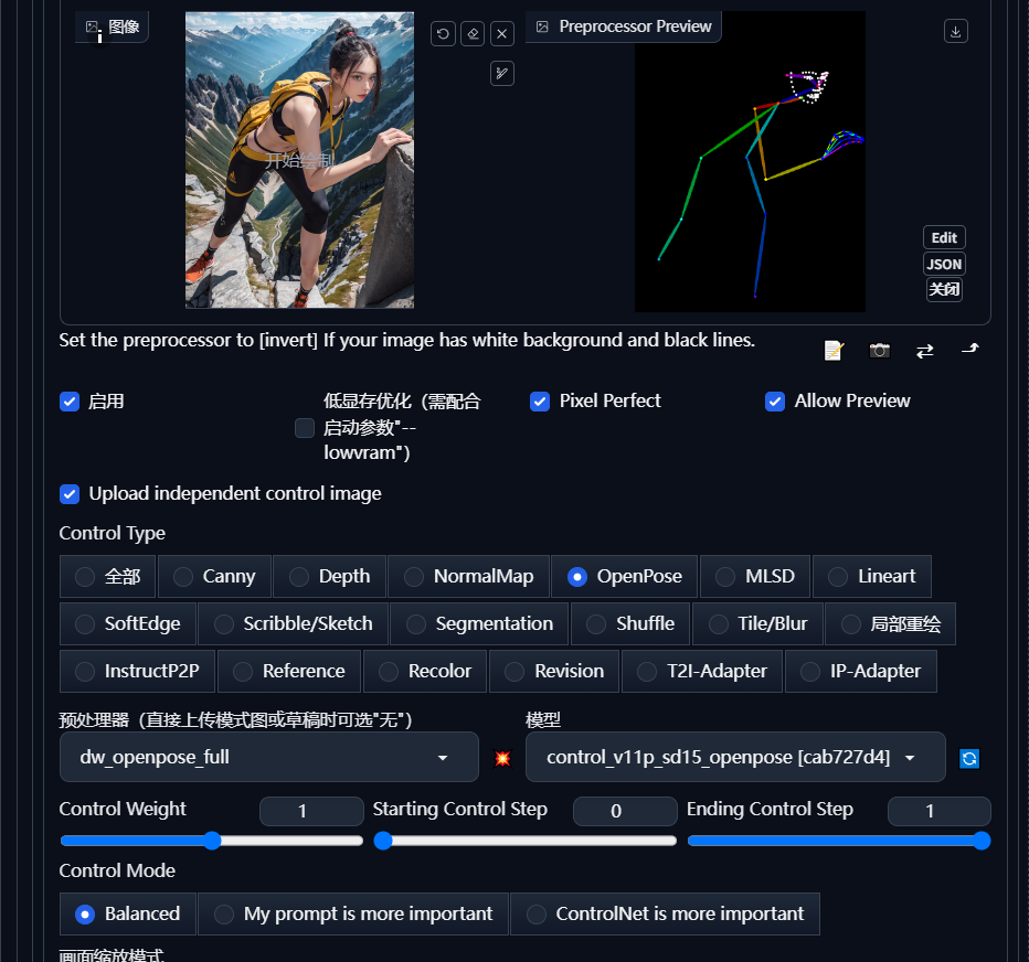 预处理器:none 模型:openpose