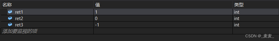 //注:VS环境下,strcmp的返回值为:1、0、-1