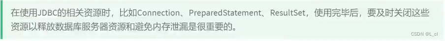 在使用JDBC技术时,必须要先获取Connection对象,在使用完毕后,要释放资源,避免资源占用浪费及泄漏。
