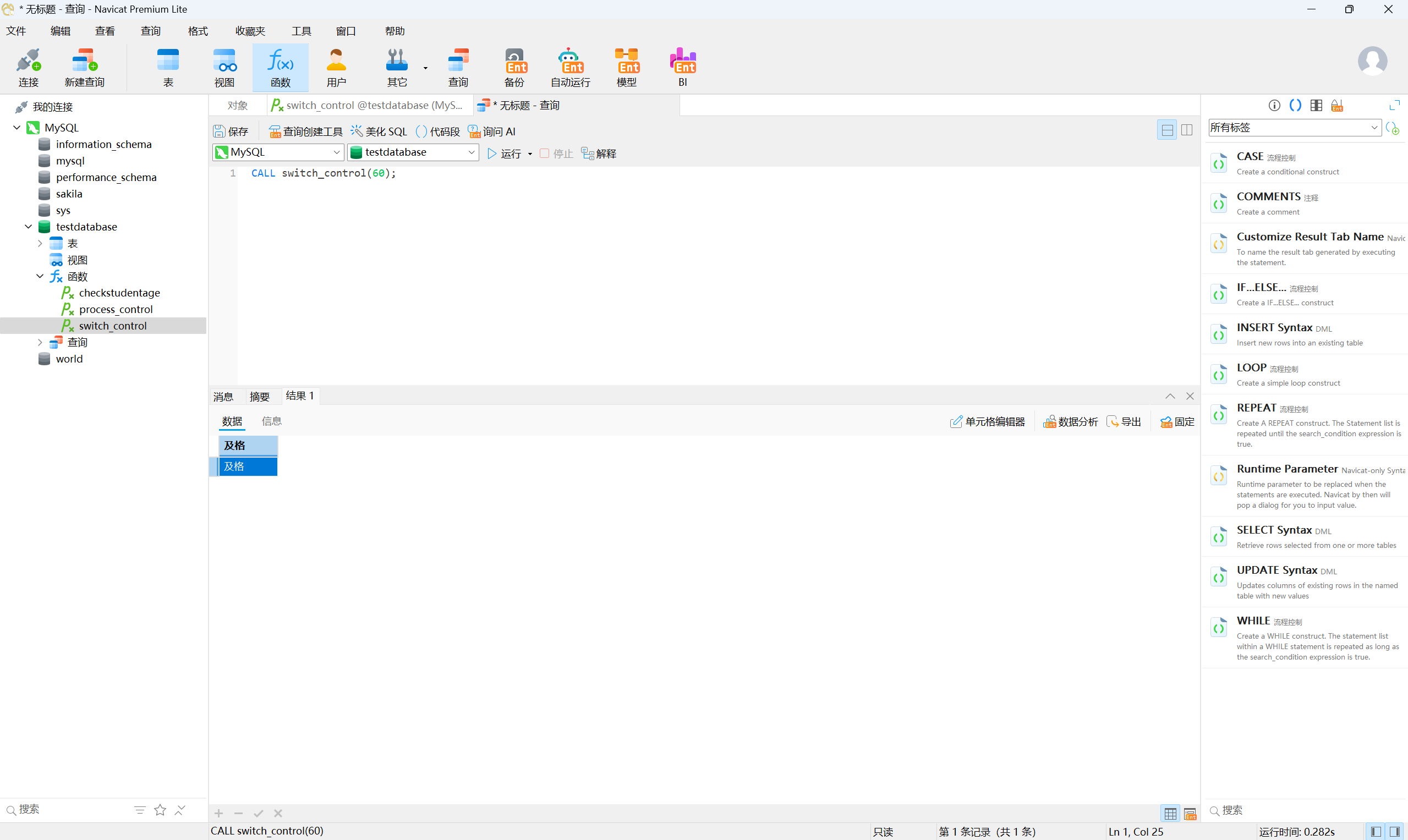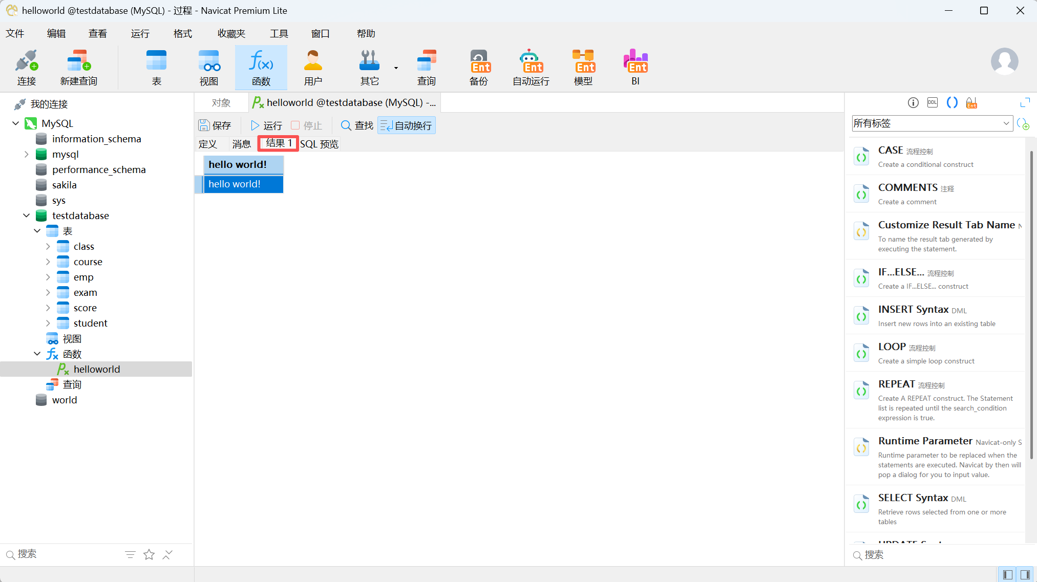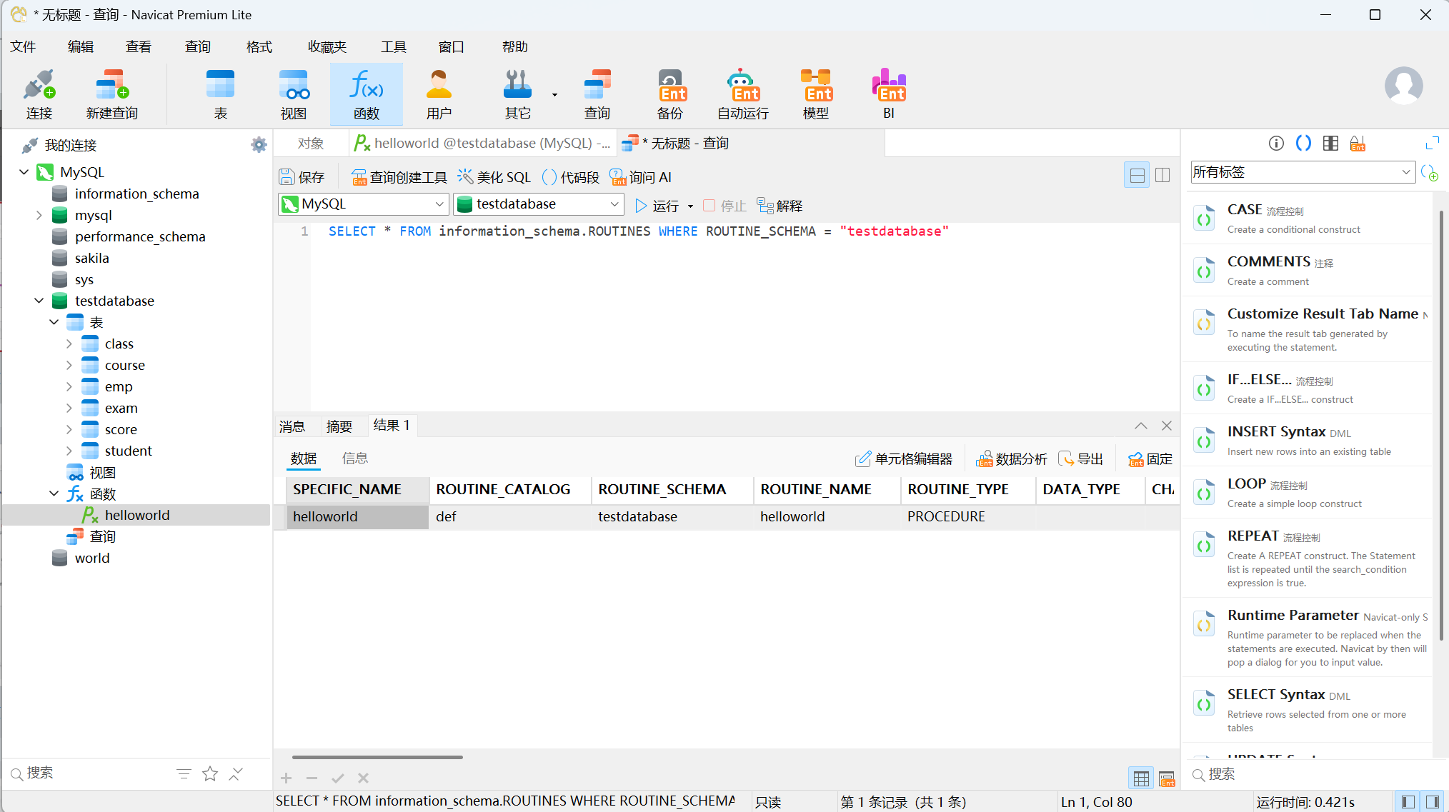 存储函数和存储过程各有优劣,总结如下表。这里就不进行额外的代码演示了,感兴趣的读者可以查看官网获取实例或者让AI帮助你完成一个示例。