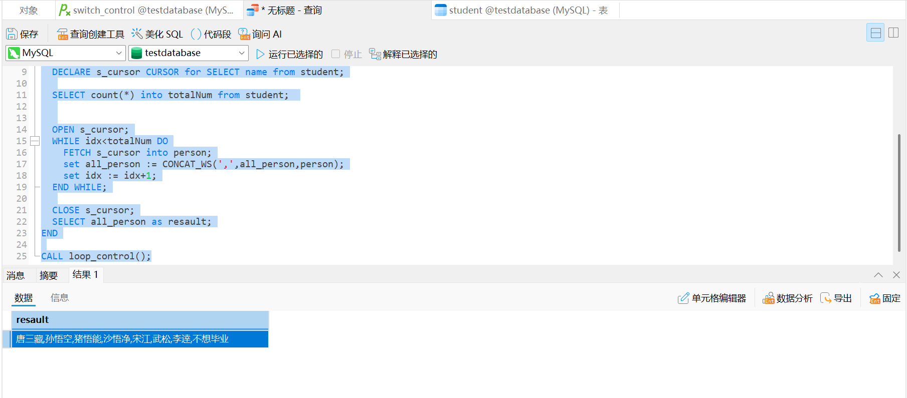 DECLARE s_cursor CURSOR for SELECT name from student;