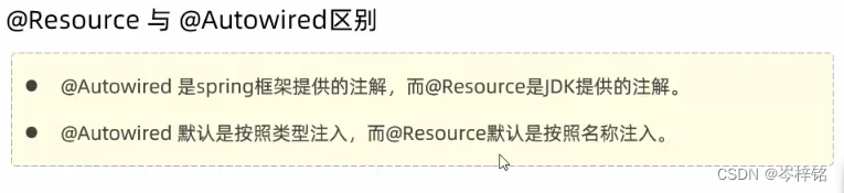 为什么它可以直接不要【@Autowired】,因为【@Resouce】是根据名字来注入Bean的!!