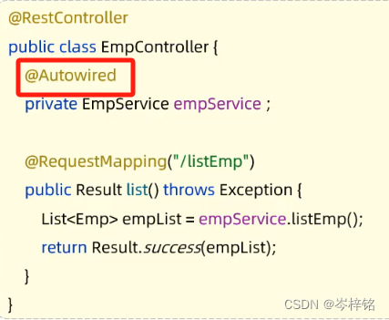 加上【@Autowired】就意味着运行时,IOC容器会提供该类型的bean对象,并赋值给该变量