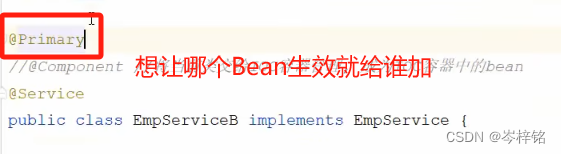 1、@Primary是在要希望生效的那个Bean上添加这个注解,不推荐是因为跟注释【@Component】其实是半斤八两的啊.......你还得去一个一个找到这个Bean,然后再Bean的代码里改