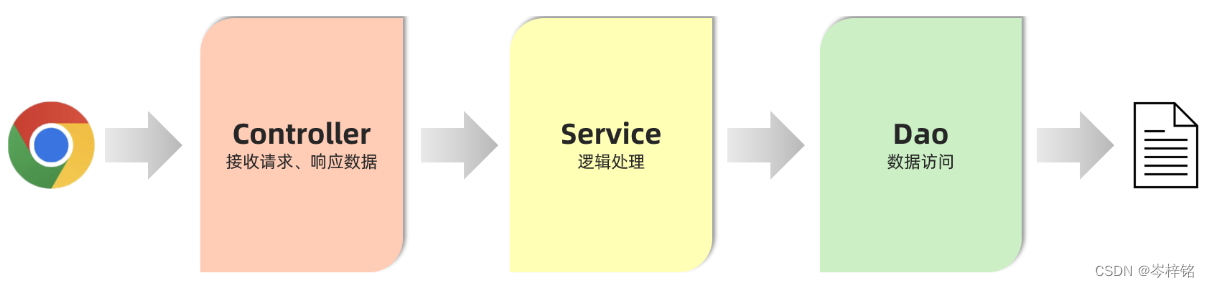前端视角:发送请求给到Controller——>Controller找service要——>service找Dao要