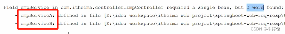 然后此时再运行时就会报错,因为超过两个同类型的实现类Bean