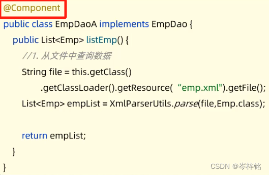 加上它,就意味着要将当前类“交给”IOC容器管理,成为IOC容器里的一个bean对象