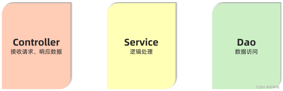 比如【Controller】的功能是接受请求、实现请求接口、响应回前端,【service】的功能是处理数据、做逻辑处理,【Dao】功能就是解析数据