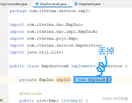 1、首先先把【Controller】【service】【Dao】之间的联系删掉