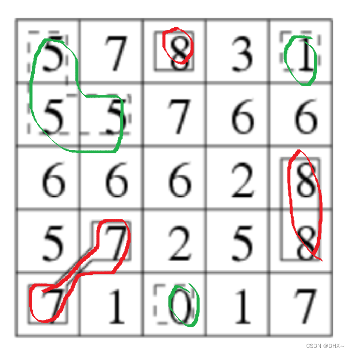 若两个格子有公共顶点,那么它们就是相邻的格子,如与 (i,j) 相邻的格子有(i−1,j−1),(i−1,j),(i−1,j+1),(i,j−1),(i,j+1),(i+1,j−1),(i+1,j),(i+1,j+1)