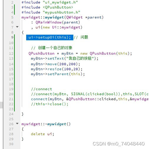 2.这可能是我们代码中的 : ui->setupUi(this); 造成的 ,我们需要把这串代码置顶