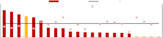 50 51.1 49.3 45.2 43.2 42.9 40.4 40.3 39.5 32.8 -20%