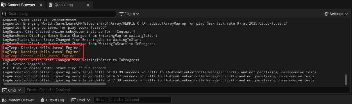 UE_LOG(LogTemp, Warning, TEXT("Hello Unreal Engine!"));
