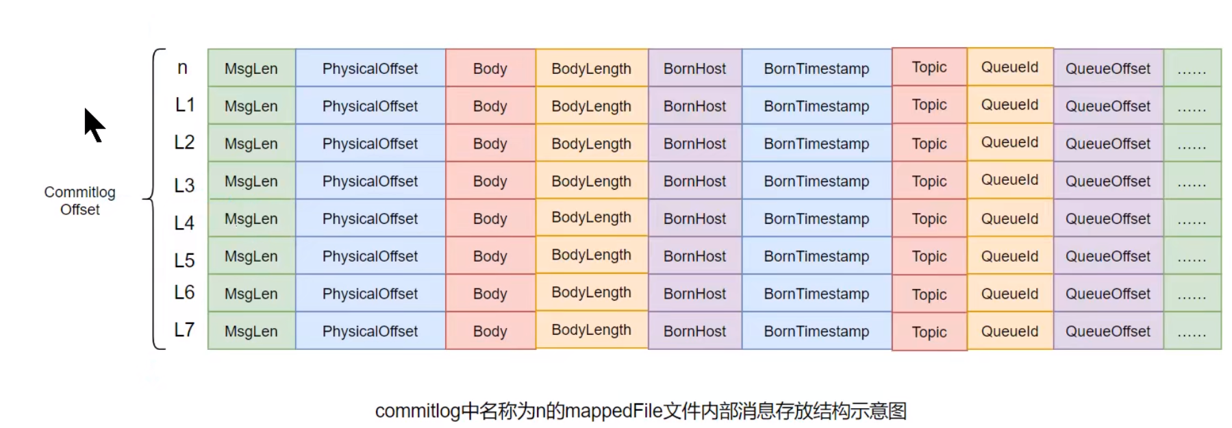 | Offset | 数值 | 消息在 CommitLog 中的位置编号 |