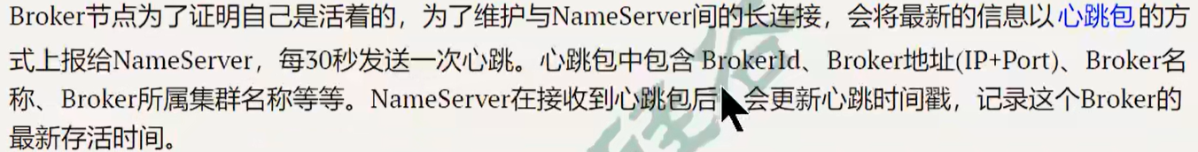 NameServer 节点间不通信,Broker 定时上报心跳(默认 30 秒一次)。