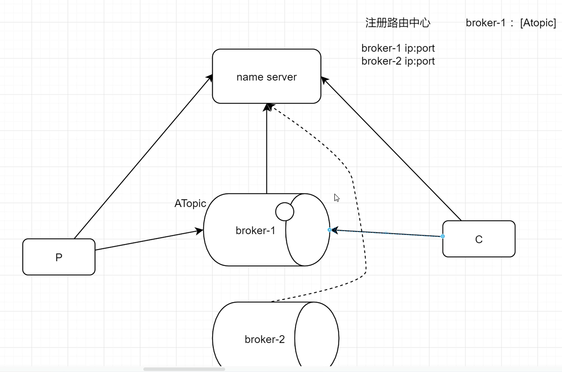 NameServer 查询:Producer 通过 NameServer 获取 Topic 的路由信息,包括哪些 Broker 存在这个 Topic 的队列(Queue)。NameServer 起到了服务发现的作用。