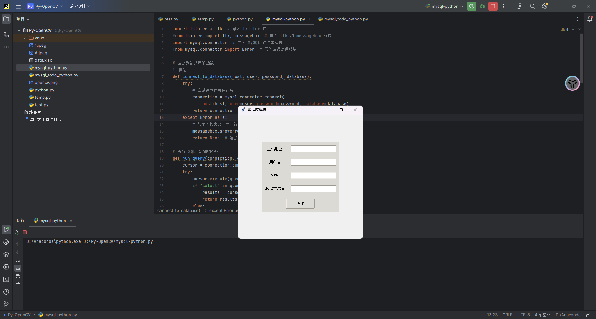 这里我会进行三套python代码连接MySQL数据库的演示。