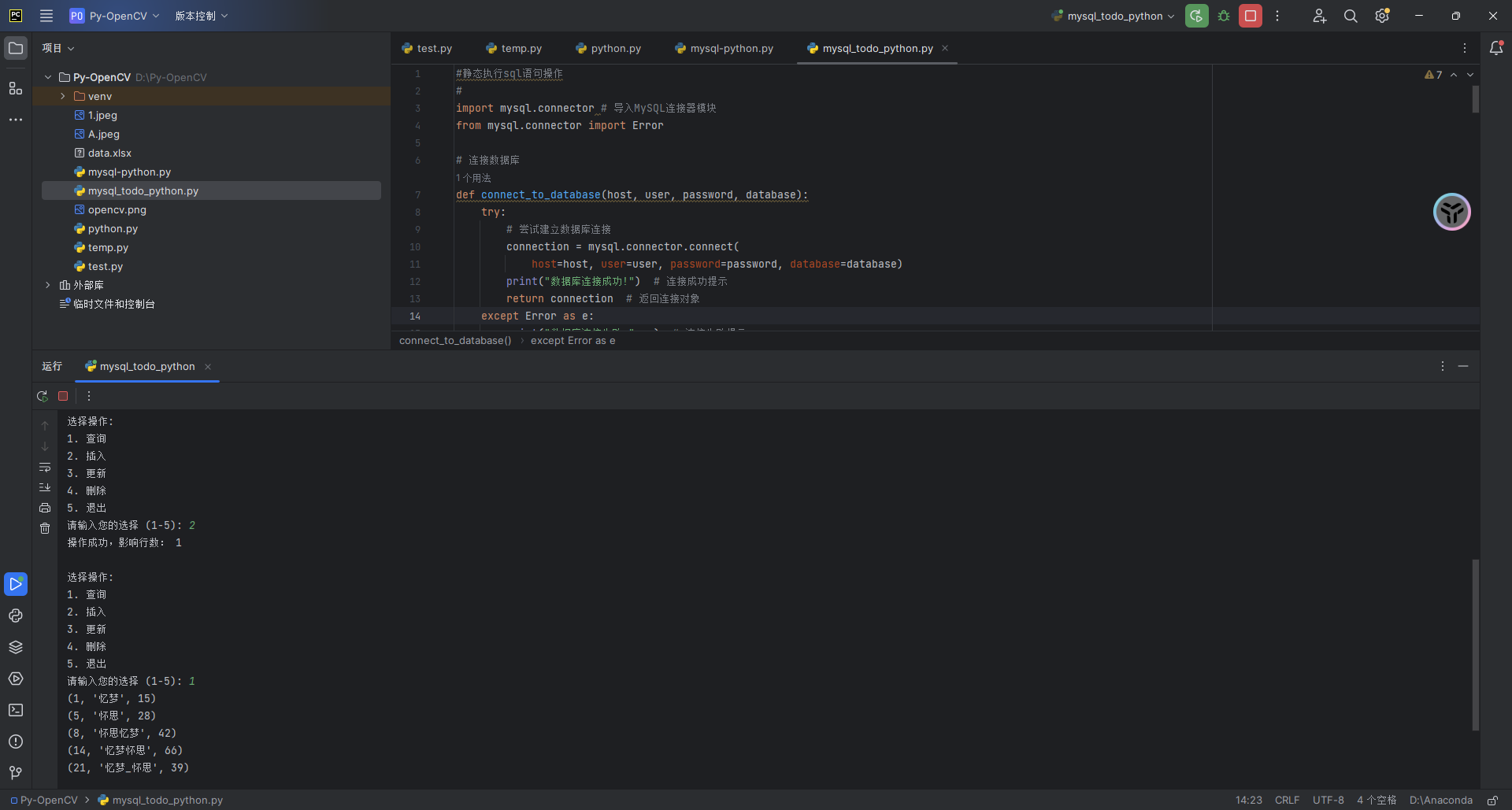 以上就是关于python代码连接MySQL数据库并执行相关sql操作的全部内容。演示不易,内容可能有点多,不知道大家能不能看完,希望能给个点赞支持一下,嘿嘿。同时也欢迎大家进行讨论!