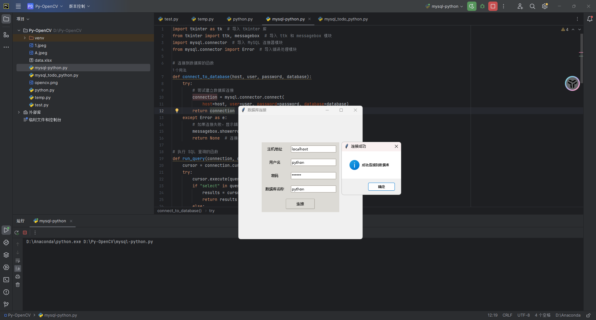 messagebox.showinfo("连接成功", "成功连接到数据库") # 如果连接成功,显示成功消息