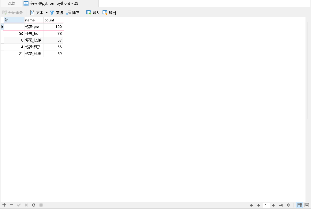 执行2操作,输入UPDATE view SET name = '忆梦_ym', count = 100 WHERE id = 1;