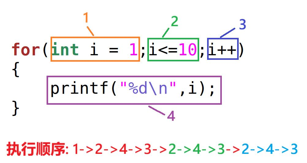 for循环适用于循环次数已知的情况,例如输出整数1到10
