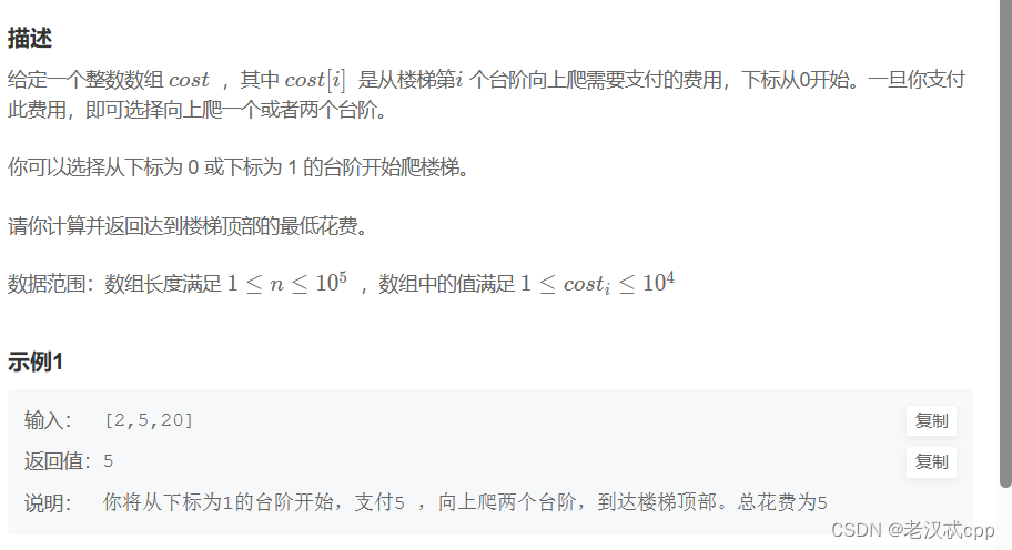 不过要注意,我们的dp数组要多开一个,因为我们要跳到第n个台阶才算结束。