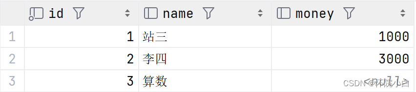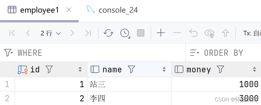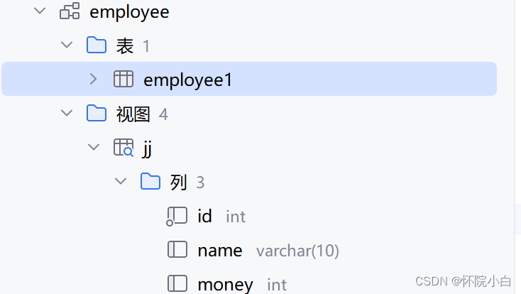 要求:再添加一个自段 money 代码如下: create or replace view jj as select id,name,money from employee1 运行结果