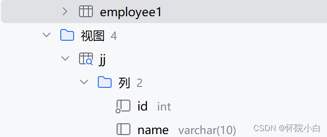 发现,视图 jj 和 基表 employee1 查询结果是一样的。