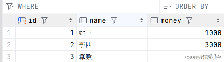 create or replace view jj as select id,name,money from employee1 where id<4;运行结果