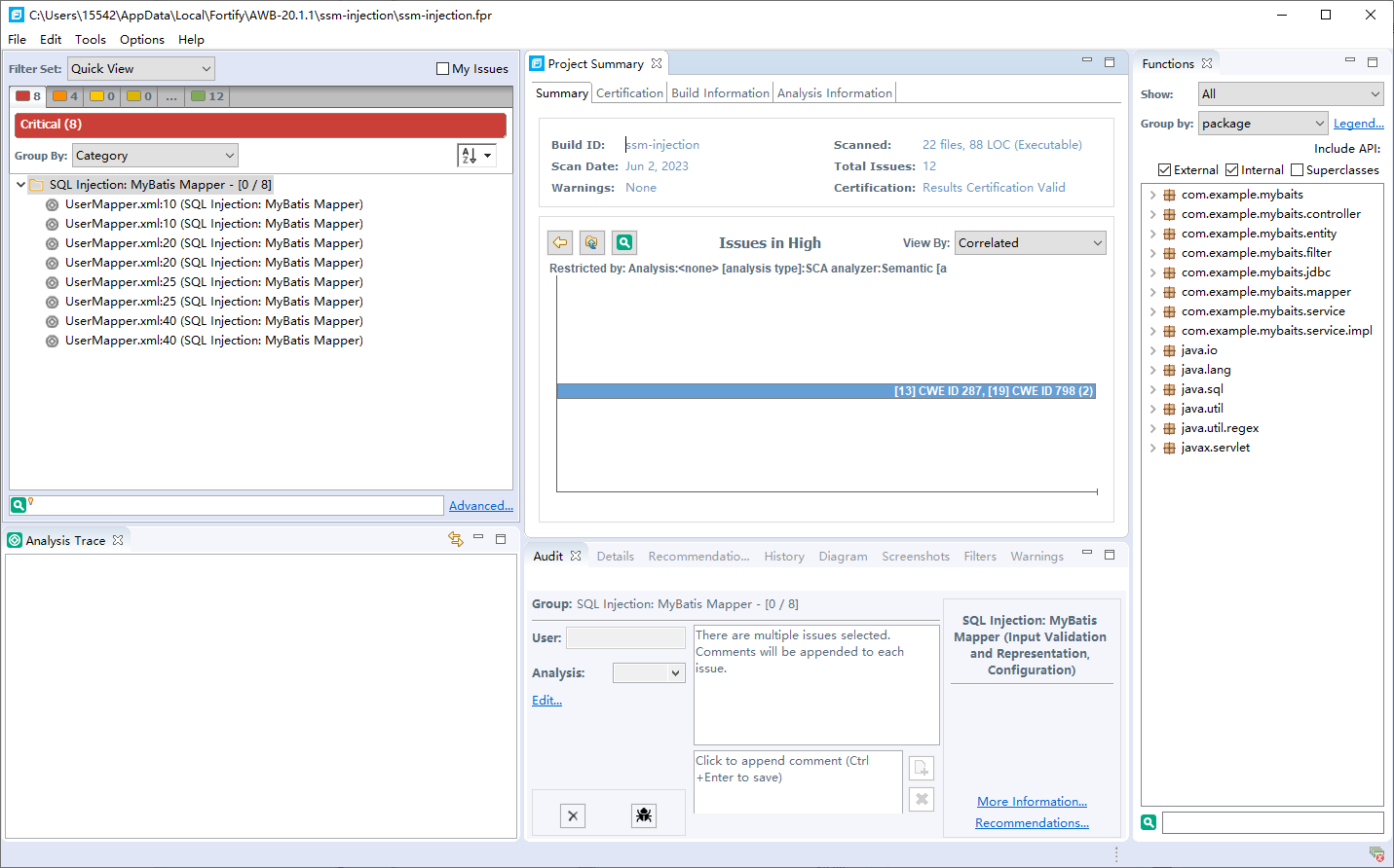 报告生成:一旦发现漏洞,Fortify会抓取相关信息,并生成包含详细漏洞信息的FPR(Fortify Project Result)报告文件,供开发者在AWB(Application Security Workbench)中查看。