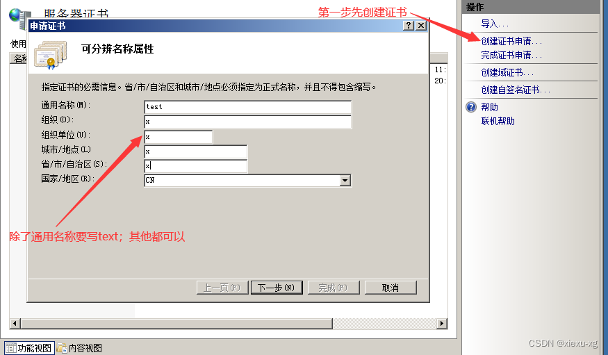 保存下一步---点击完成---然后桌面会颁发一个证书给你----回到IIS;