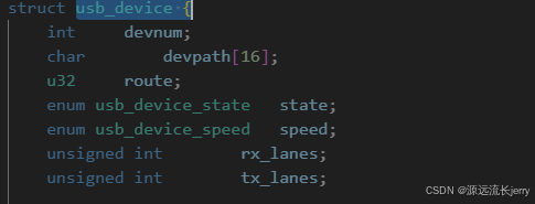 - 功能:表示一个完整的USB设备实例,包含设备的状态、配置、端点等运行时信息。