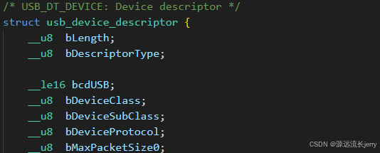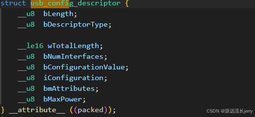 descriptor:嵌入的usb_device_descriptor结构体,存储设备描述符。actconfig:当前激活的配置(指向usb_host_config,内含usb_config_descriptor)。ep_in/ep_out:输入/输出端点数组,用于数据传输。- 作用:管理设备的生命周期、配置切换和数据通信。