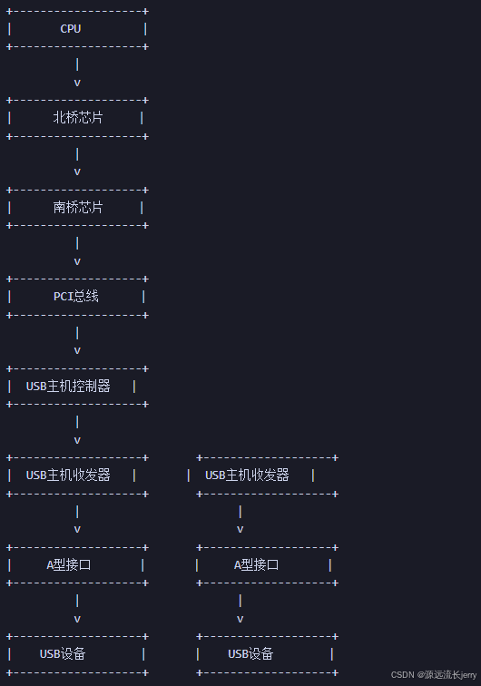 - 功能:USB设备是通过USB接口连接到计算机的外部设备,如U盘、鼠标、键盘等。图中显示了两个USB设备,分别连接到两个A型接口。