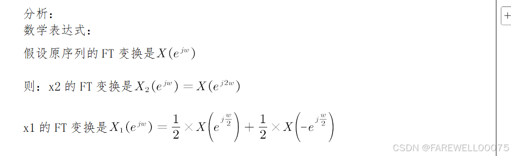 对原序列进行抽取,使得原序列的频谱以二倍频率扩展,而且采样率也会减半。由于频谱被扩展,原始频谱中的低频成分会“拉伸”到高频范围,造成频谱混叠。频谱混叠的结果是,某些低频成分会叠加在高频成分之上,使得高频部分的幅度发生变化。
