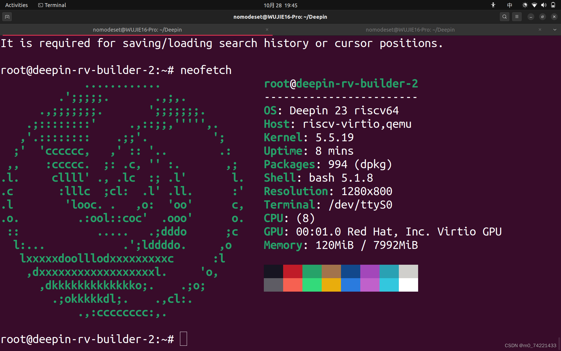 在Ubuntu上构建Deepin RISC-V Ubuntu下Deepin RISC-V 模拟环境搭建第二步:从中科院软件所镜像站下载rootfs第三步:新建 QEMU 镜像并分区、格式化rootfs 并非可启动镜像,并且空间有限,故我们应当重新创建一个镜像,将rootfs 的内容全部复制粘贴到上面去。创建镜像( 这里设定其为8G大小,您可以改为您偏好的镜像大小 )设定变量( 关闭终端后得重新设定 )下面,挂载这个新镜像并分区、格式化当进入fdisk交互界面时,先按g并回车( 在镜像中建立GPT分区表