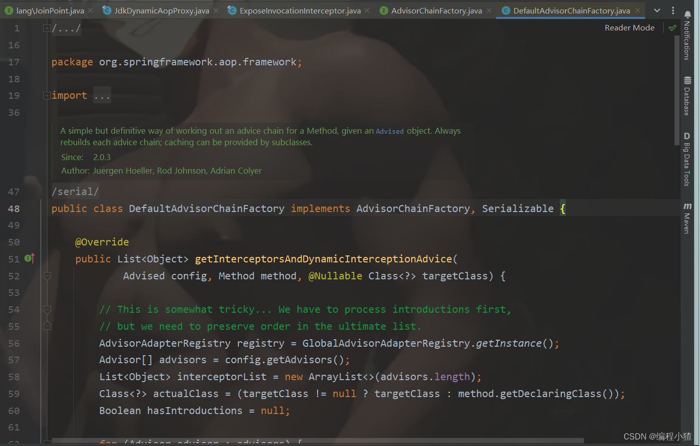 如果读者看源码如果有困难,可以看一下这个我简化了的JdkDynamicAopProxy类。这个类我保留了主要逻辑,把一些提高代码健壮性的部分去掉了。