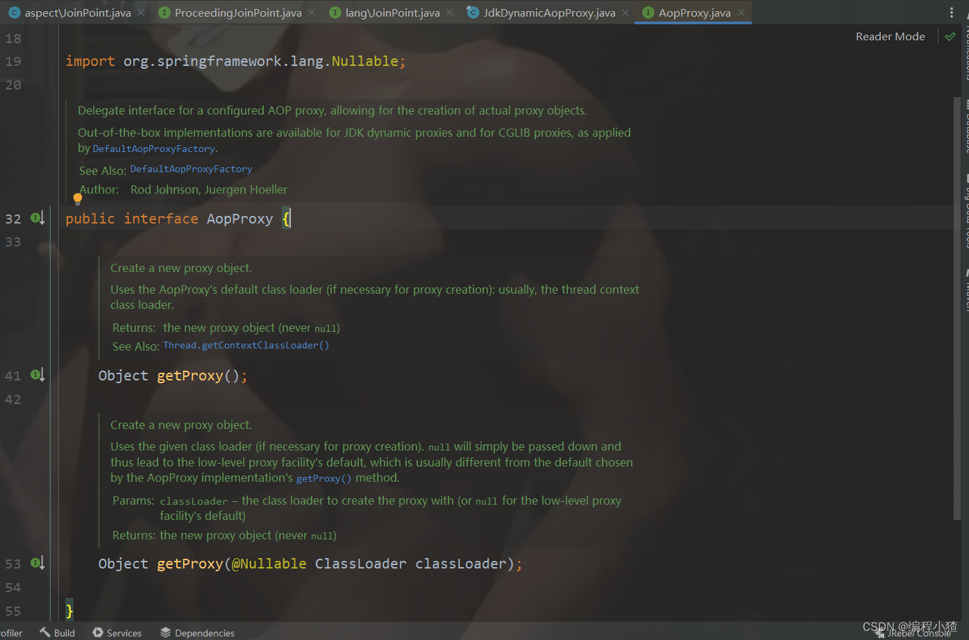 AopProxy 接口是 Spring AOP 提供的代理接口,它定义了获取代理对象的方法。JdkDynamicAopProxy 类通过实现该接口,提供了基于 JDK 动态代理的代理对象获取功能。