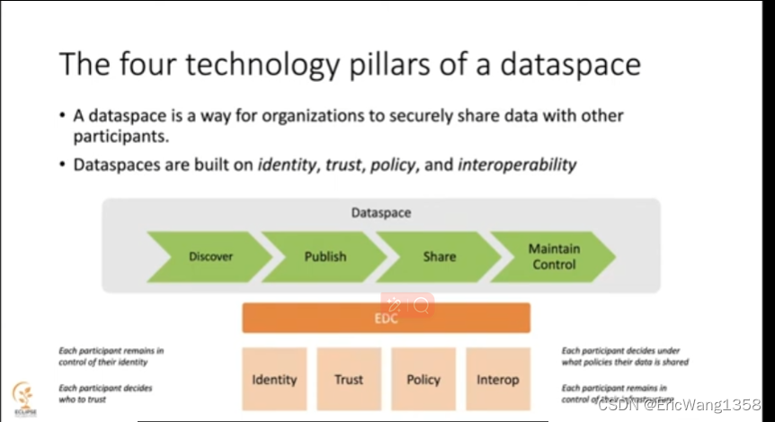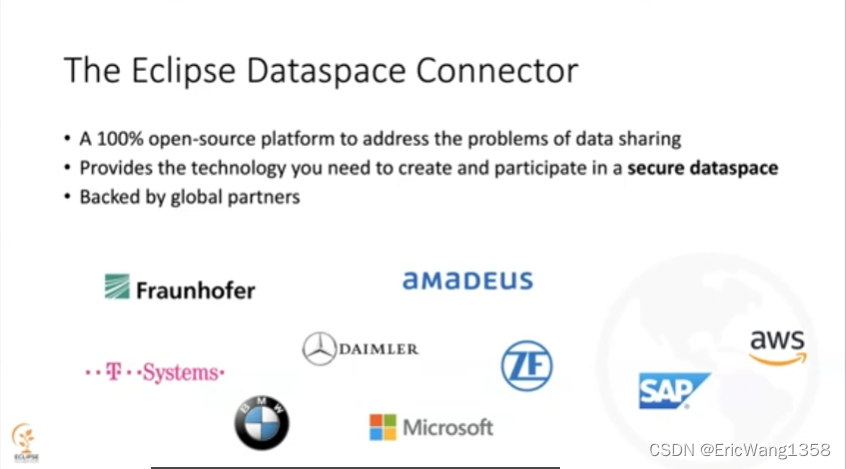 - Eclipse Dataspace Connector (EDC) 是一个开源项目,旨在提供一种标准化的方法来连接和共享数据空间中的数据。它是 Eclipse Foundation 下的一个项目,目标是促进数据共享和数据交换的互操作性。以下是 EDC 的一些关键特点和功能: