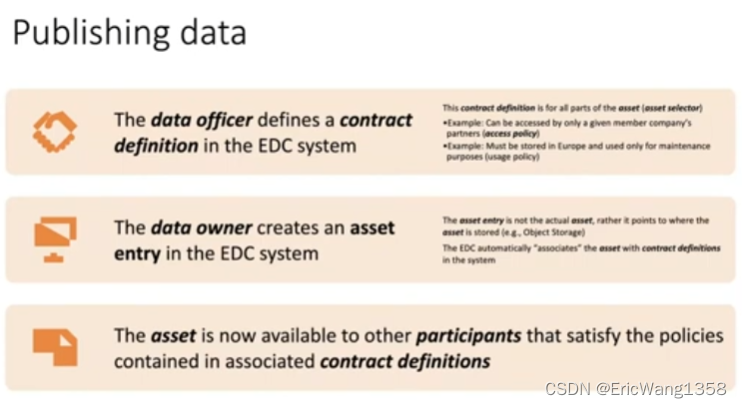 - 数据互操作性:EDC 提供了一种标准化的方法,使不同系统之间能够互操作,进行数据交换,而不需要依赖于特定的技术或平台。