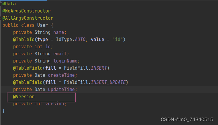 1,在实体类version属性添加@version注解