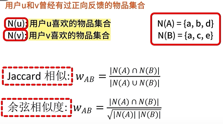 计算方法:Jaccard相似系数、余弦相似度。