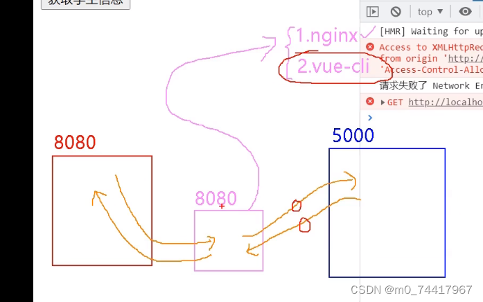 如下图:假如8080是客户端电脑地址,中间的小方块是代理服务器的地址,此地址要跟客户端电脑地址保持一致,代理服务器和后端服务器通讯不存在跨域的问题
