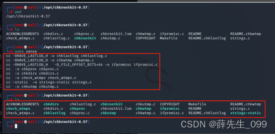 (4)使用make对chkrootkit进行编译安装,使用命令:make sense。