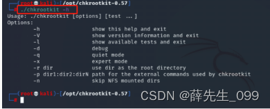 (5)安装成功后,使用./chkrootkit –h 可查看工具的使用参数。