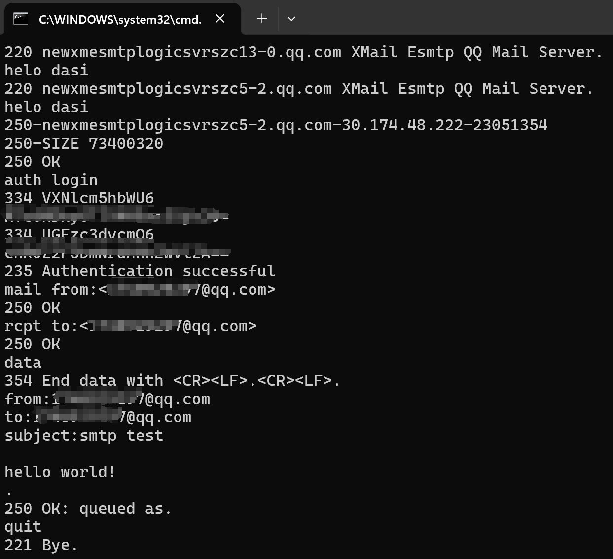 >telnet smtp.qq.com 587