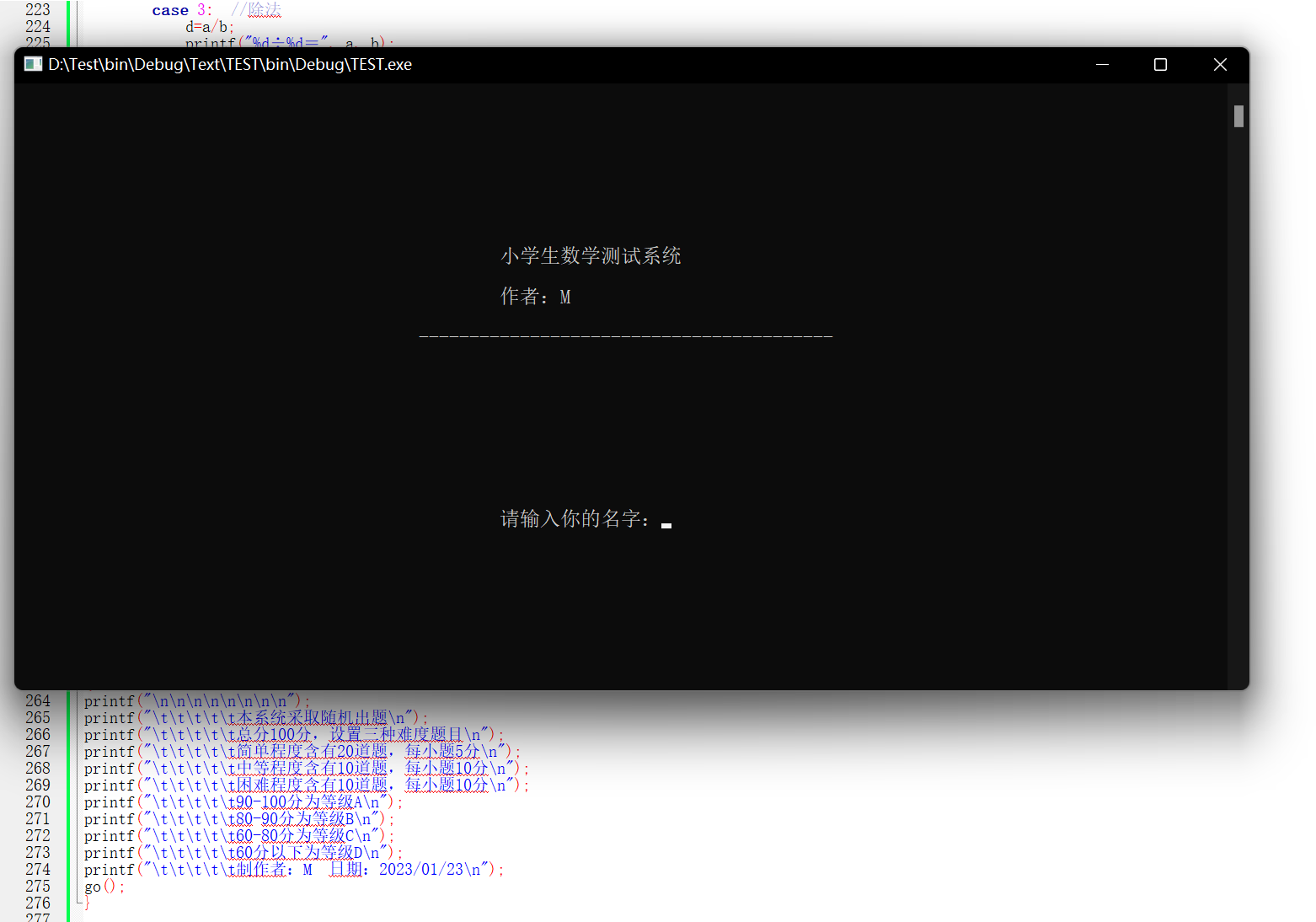 c语言程序设计——小学生算数测试系统 c语言程序设计——小学生算数测试系统,c语言学习实验报告,满足姓名输入,系统说明,随机出题,且设置不同难度,答题时判断题目正误,答题之后统计答对题目数,并计算成绩,划分等级的作用。