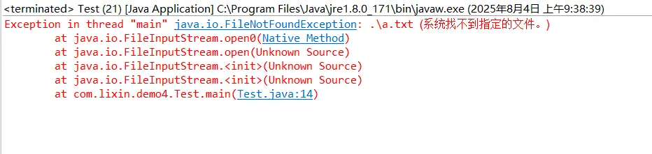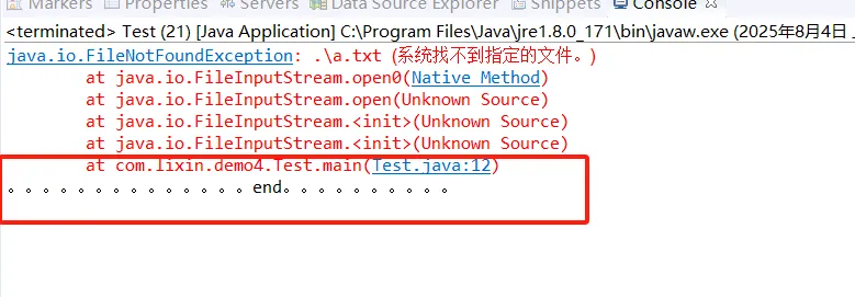 //如果使用throws声明异常,这个代码一旦引发异常,程序会直接抛出异常,程序中断执行