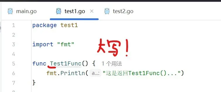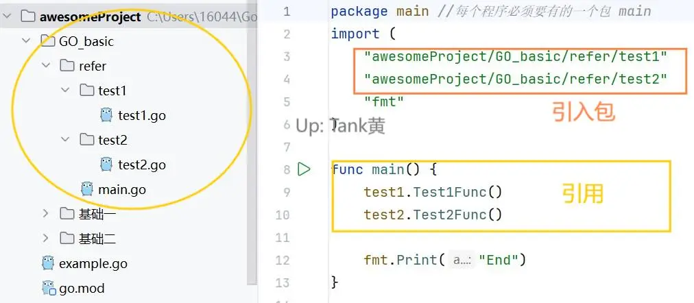 步骤三:在main.go中import其他包进行输出